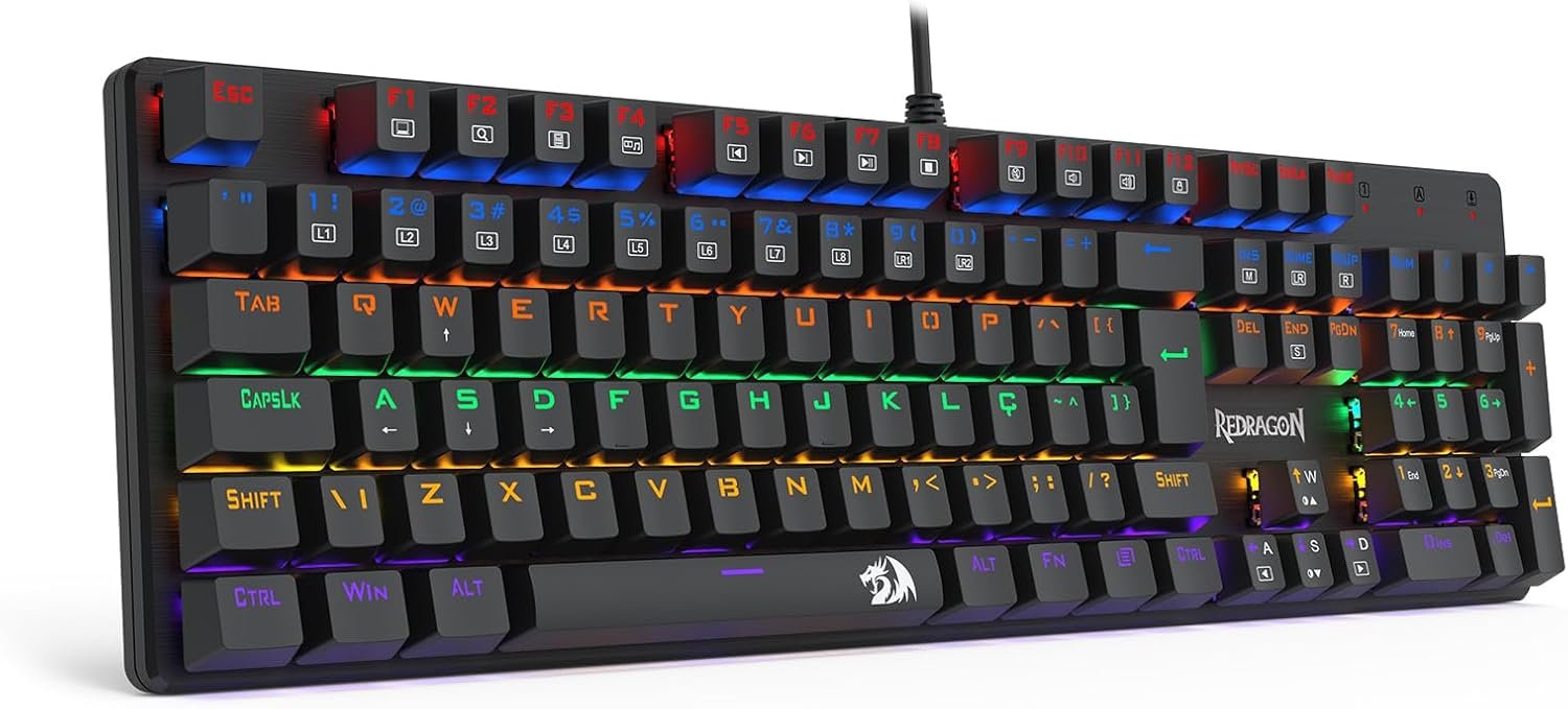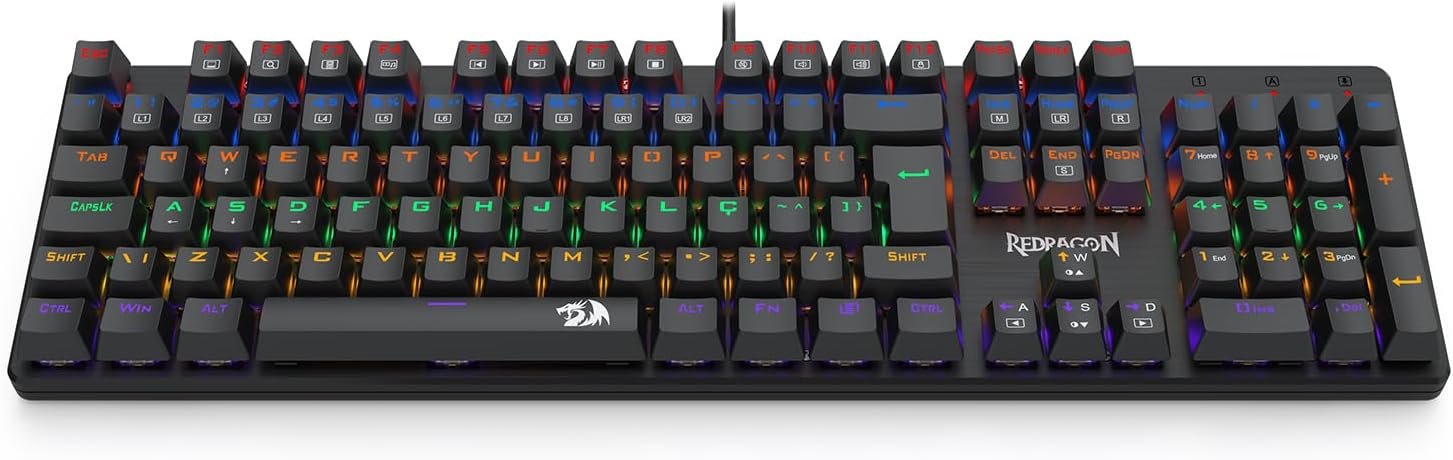 Se você busca elevar o nível das suas jogadas sem pesar no bolso, o Teclado Mecânico Gamer Redragon Valheim é a escolha definitiva. Equipado com os aclamados switches Brown, ele oferece o equilíbrio perfeito entre resposta tátil e baixo ruído, sendo ideal tanto para longas sessões de gaming quanto para quem precisa de precisão e conforto na digitação diária.