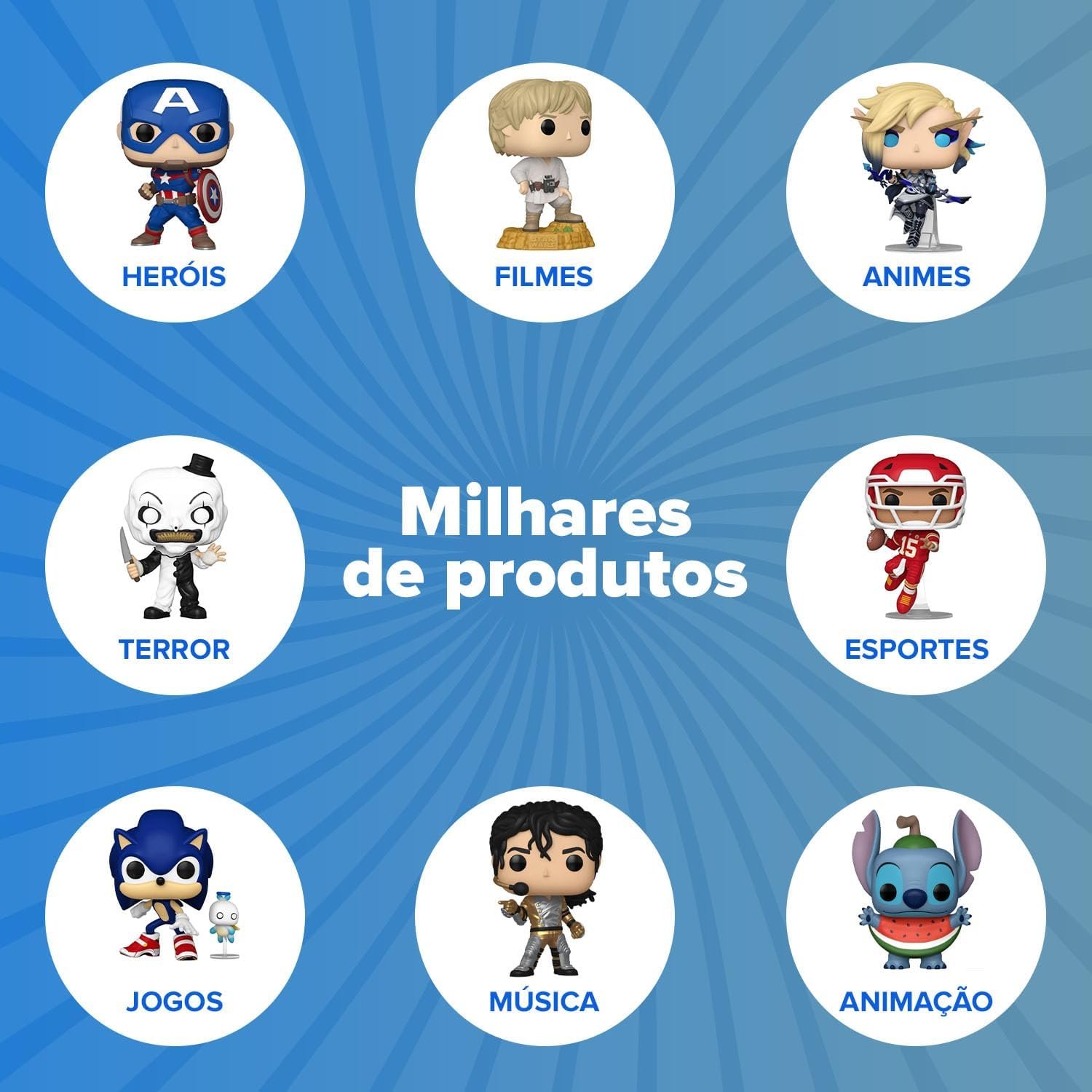 - SURPREENDA-SE. Descubra uma vasta gama de personagens de filmes, séries, videogames e quadrinhos para todos os gostos.