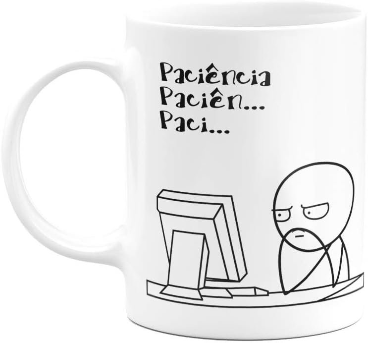 - Caneca divertida geek com tema ‘Paciência’, ideal para fãs de cultura nerd e geek