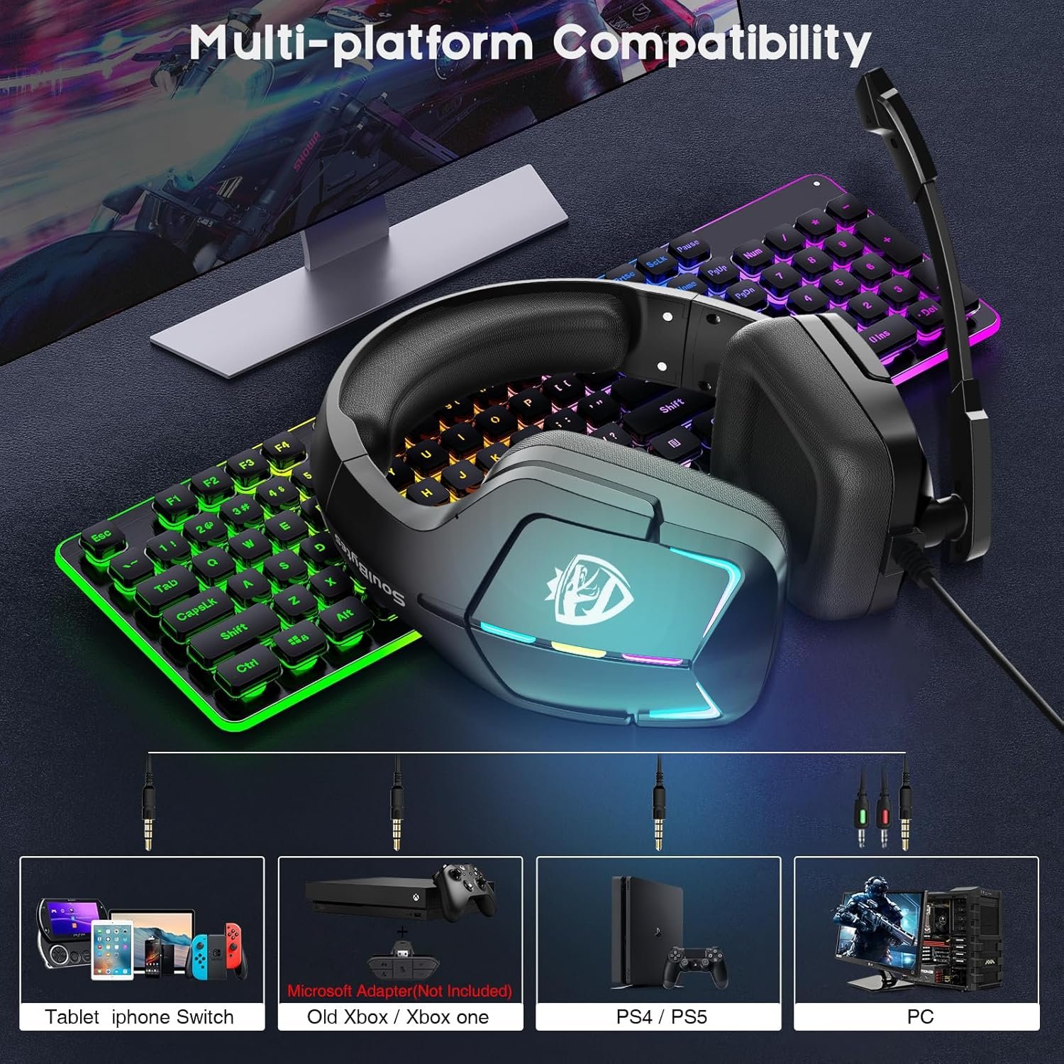 4. Compatibilidade versátil: conecte o S12 a uma variedade de dispositivos com sua interface de fone de ouvido USB + 3,5 mm + 4 pinos, garantindo compatibilidade com Xbox One, PS5, Switch, PC e laptop.