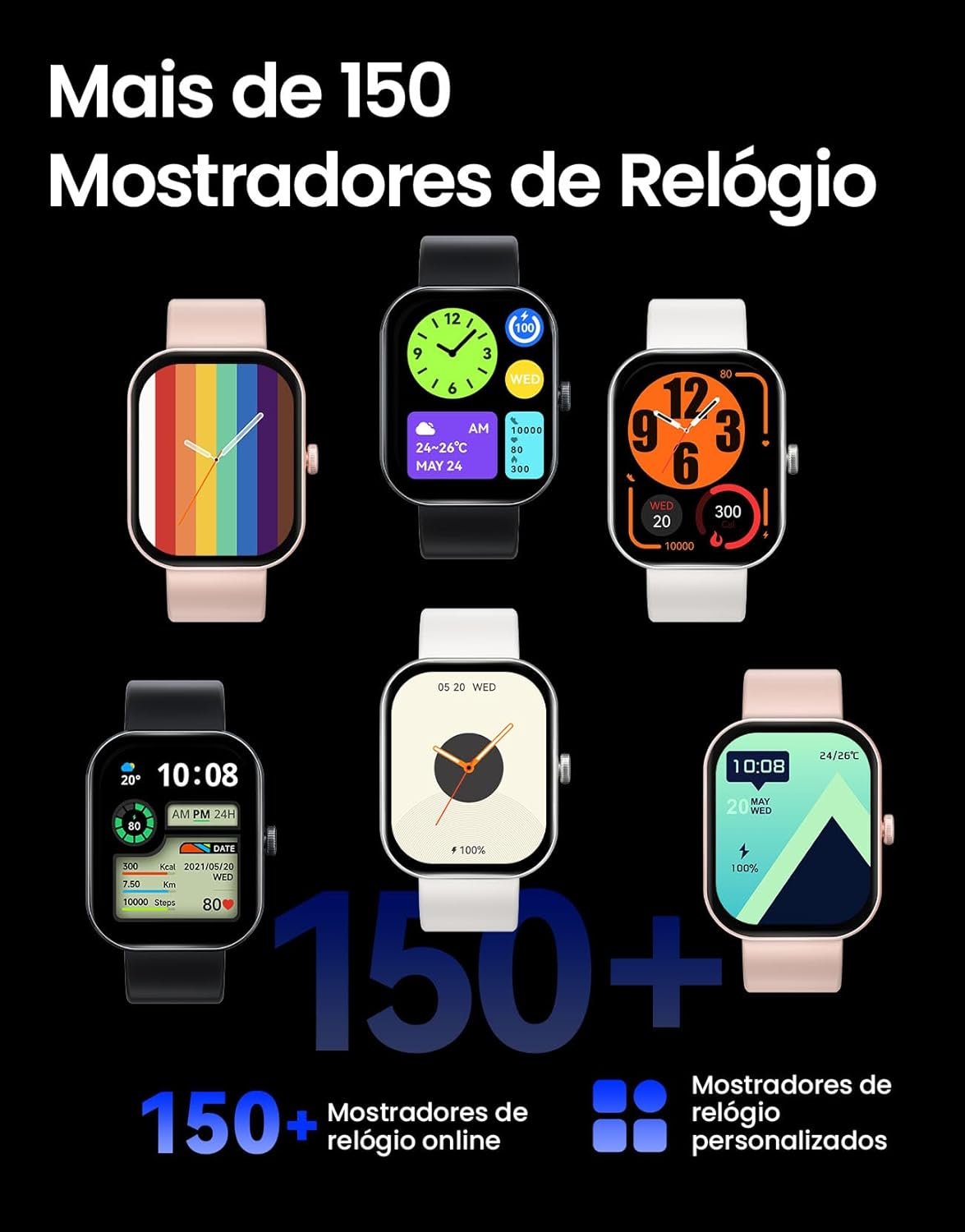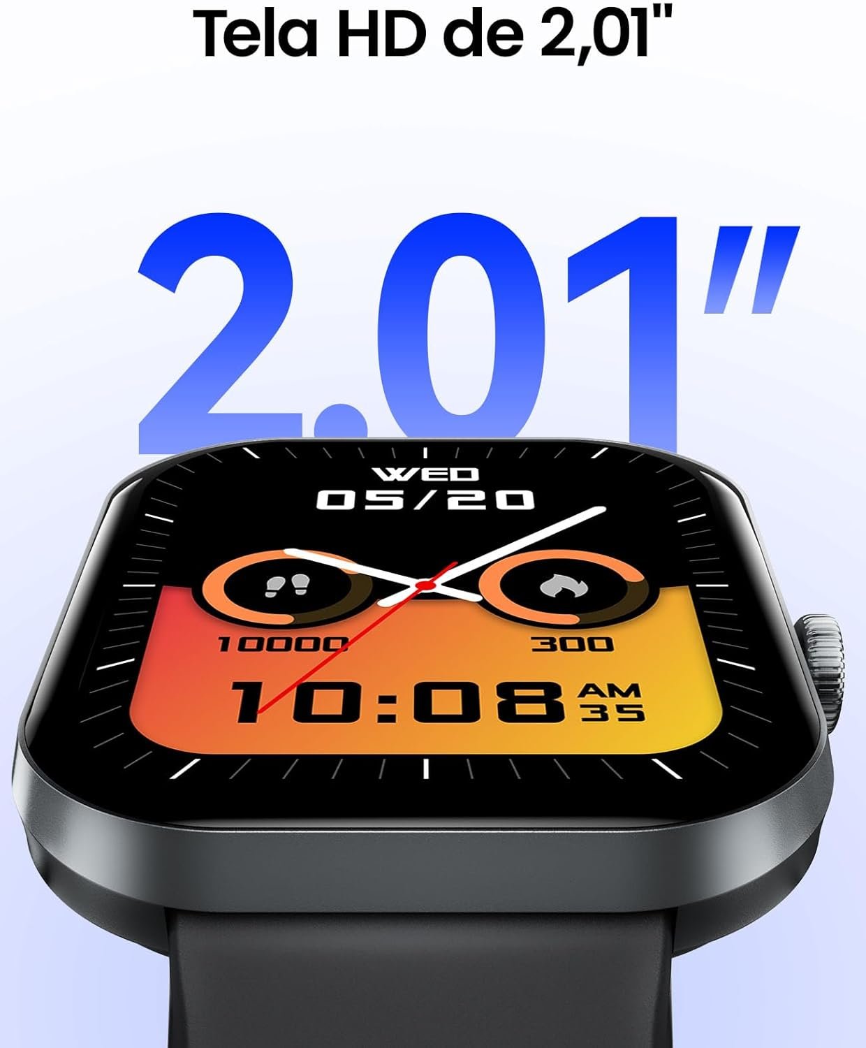 Tela HD de 2,01″ e Mostradores Personalizáveis: Desfrute de uma impressionante tela de 2,01″ com alta definição e visuais vibrantes. Escolha entre mais de 150 mostradores online ou personalize o seu para refletir seu estilo único.