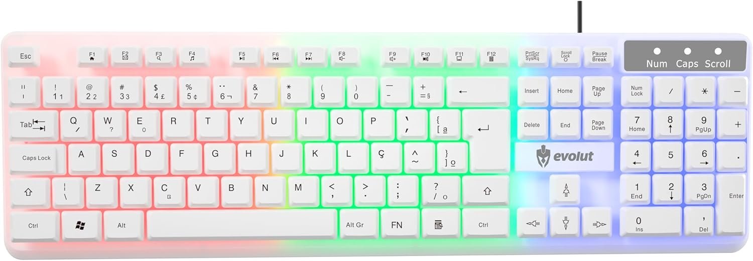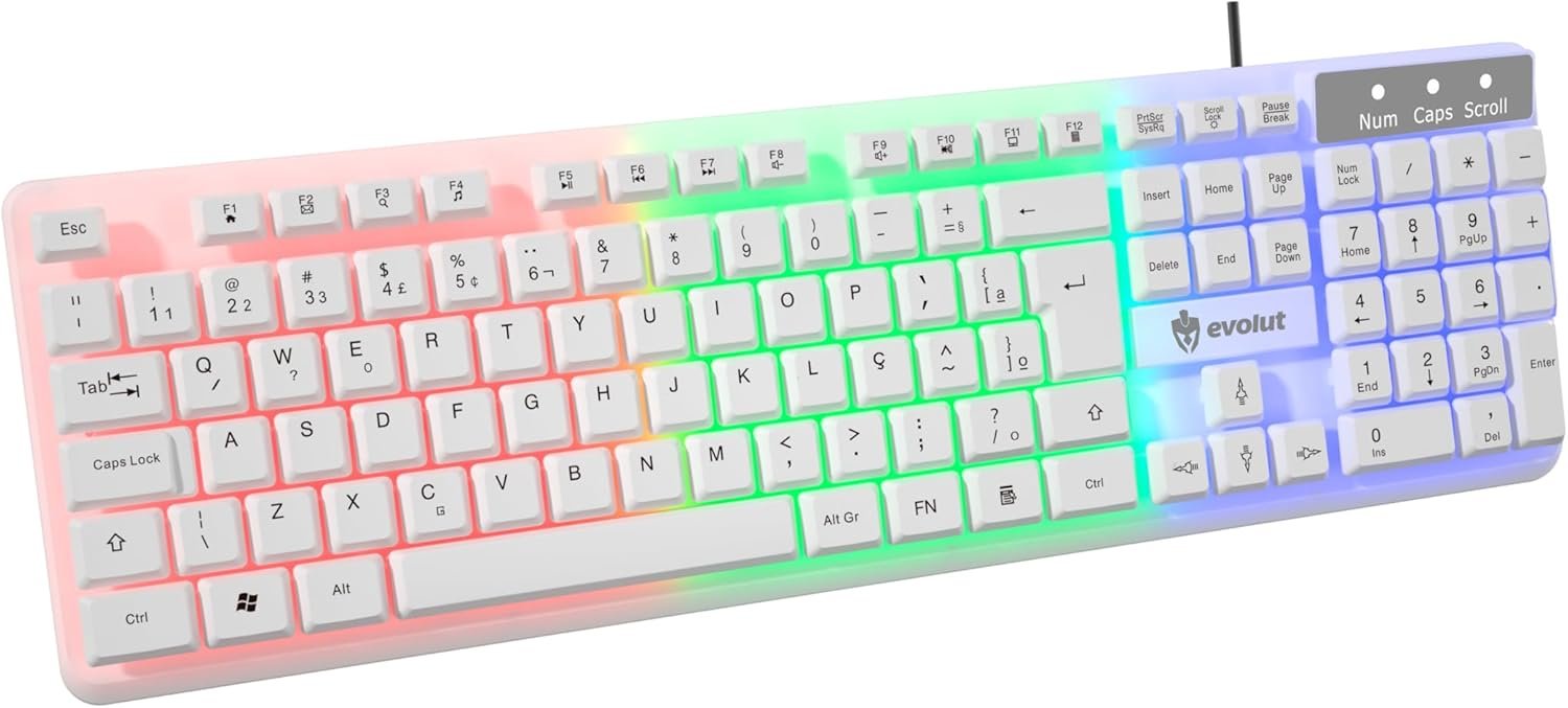 – Teclado com iluminação LED Rainbow para um setup mais estiloso. – Mouse ergonômico com ajuste de DPI para precisão nos jogos. – Headset com som estéreo de alta qualidade e microfone ajustável. – Mousepad antiderrapante com superfície ideal para movimentos rápidos. – Design moderno na cor branca, perfeito para setups gamers.