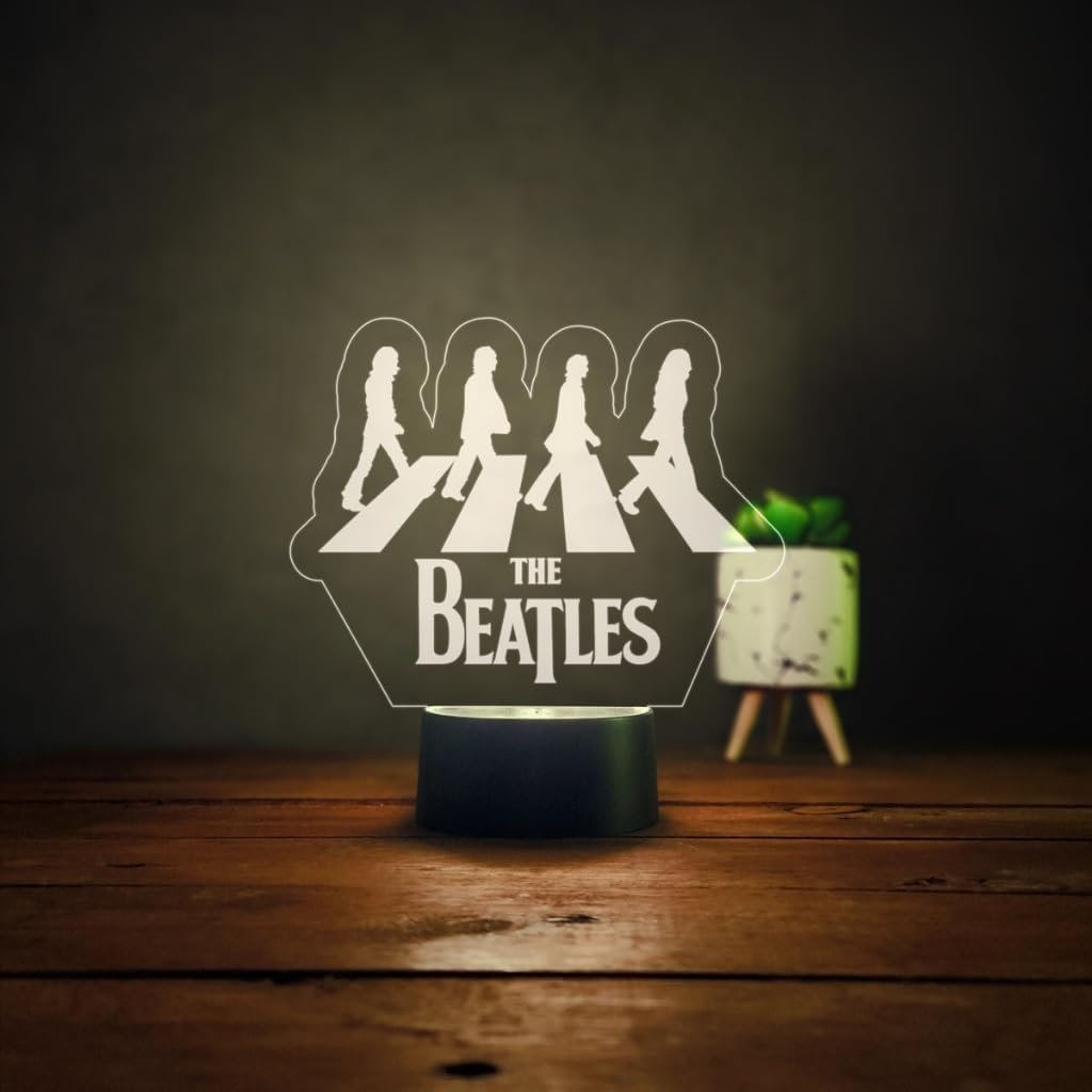 Luminária de Mesa de LED 3D The Beatles / Luz Noturna Decorativa Esta luminária é uma combinação perfeita de design elegante e iluminação suave, que certamente irá adicionar um toque especial ao seu ambiente. Feita com acrílico de alta qualidade de 2mm de espessura, esta luminária é durável e resistente, proporcionando uma luz uniforme e agradável. O acrílico transparente permite que o desenho brilhe intensamente quando acesa, criando uma atmosfera acolhedora. A lâmpada de ilusão óptica usa uma construção plana que se transforma em um objeto 3D iluminado. Com uma base cilíndrica controlada por toque e um design clássico que contém 7 LEDs coloridos diferentes, para combinar perfeitamente com sua decoração. Mude a cor com um deslize do dedo e escolha entre 7 LED de cores diferentes. Tamanho da luminária: 20cm Tamanha da Base circunferência; 10cm Tamanho da altura da base: 4 cm Pode ser utilizado com cabo USB ou pilhas Itens Inclusos: 1- Acrílico 1 – Base de Led com 7 cores 1 – Cabo Usb Garantia: 1 Mês