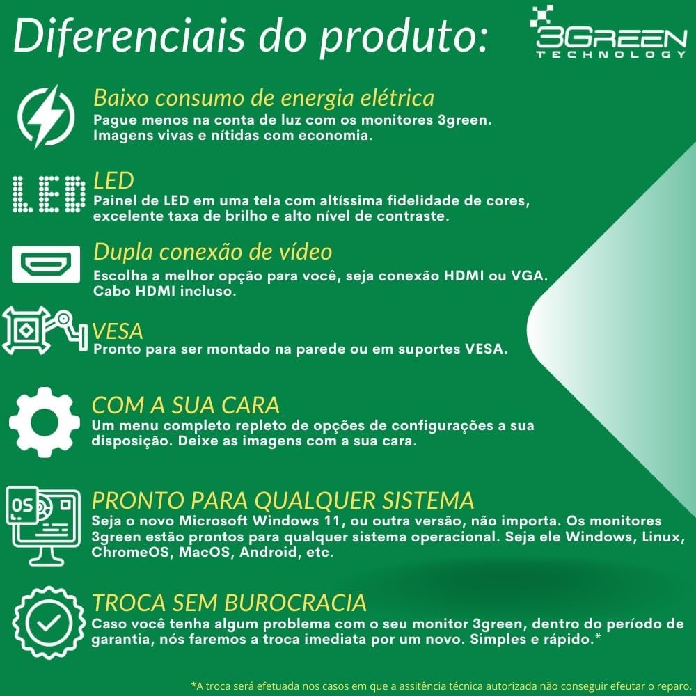 Promoção Amazon: Monitor 19.5″ LED, Widescreen, 75Hz, 2ms, HD, HDMI, VGA, VESA, Ajuste de inclinação – 3green M195WHD – R$319,90