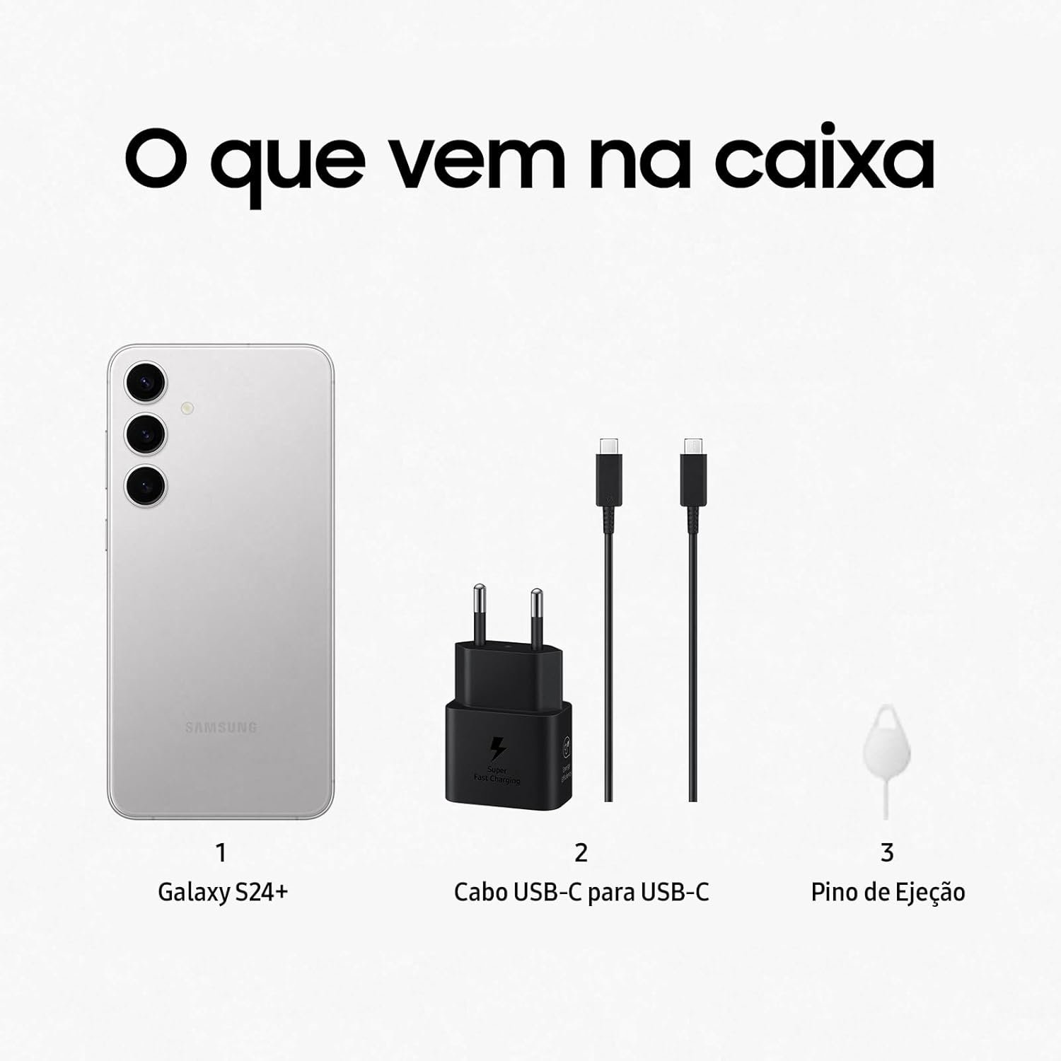 Smartphone Samsung Galaxy S24+, Galaxy AI, Câmera Tripla Traseira de até 50MP, Selfie de 12MP, Tela de 6.7″ 1-120Hz, 256GB, 12GB de RAM, eSIM. 256GB de Memória Interna(*) e 12GB RAM;