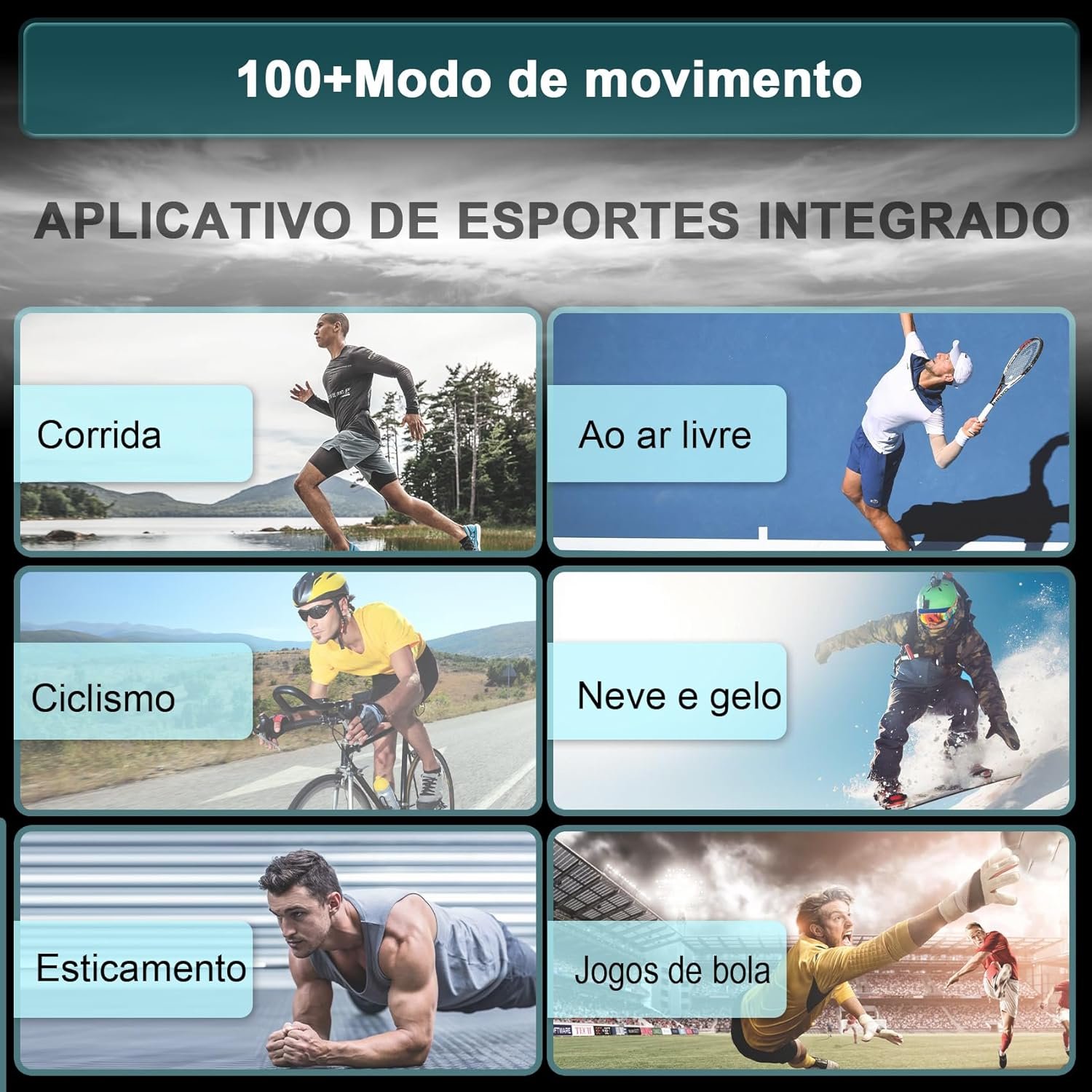 🏃♂️【100 Modos Esportivos & Dados de Atividades Diárias】 Este relógio esportivo suporta 100 modos de esporte, atendendo às suas diversas necessidades de atividades físicas. Escolha o modo adequado para cada cenário (corrida, ciclismo, esportes com bola, artes marciais, esportes no gelo, etc.). Além disso, o relógio registra dados diários como passos, calorias queimadas e distância percorrida, ajudando você a acompanhar seu progresso.