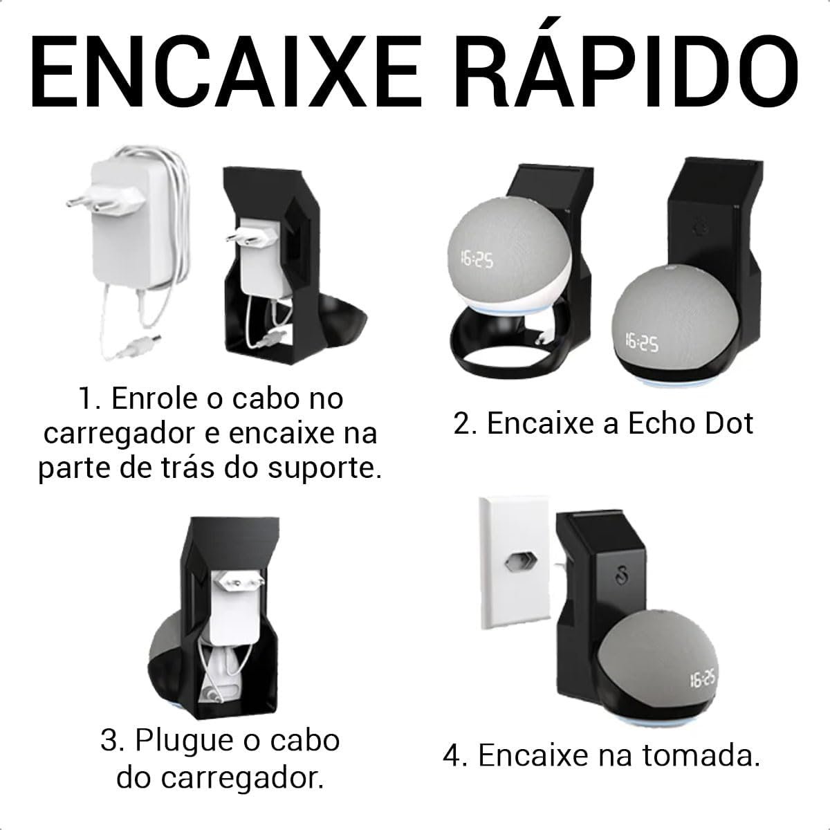 Montagem Fácil e rápida: Basta enrolar o cabos de alimentação dentro do suporte, encaixar a alimentação, posicionar a Echo Dot no suporte e plugar na tomada