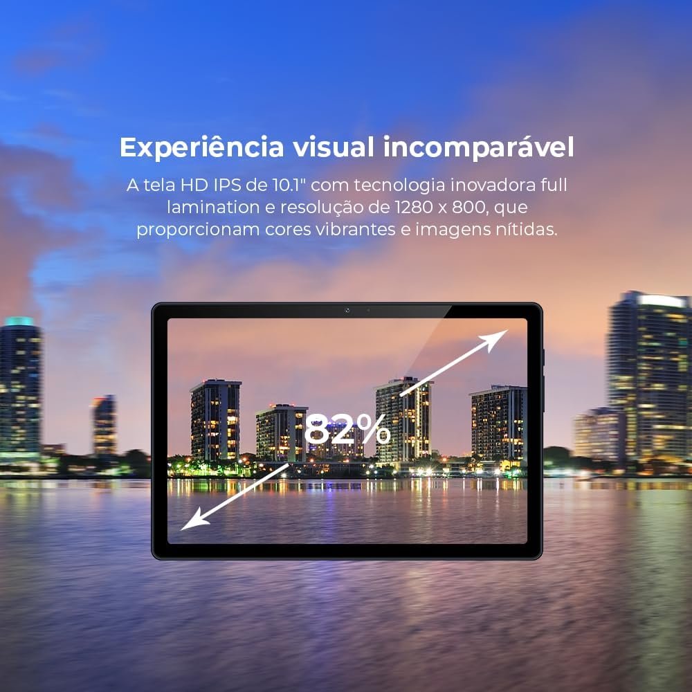 - EXPERIÊNCIA VISUAL INCOMPARÁVEL na tela HD de 10.1″ com tecnologia inovadora de full lamination e resolução de 1280×800;