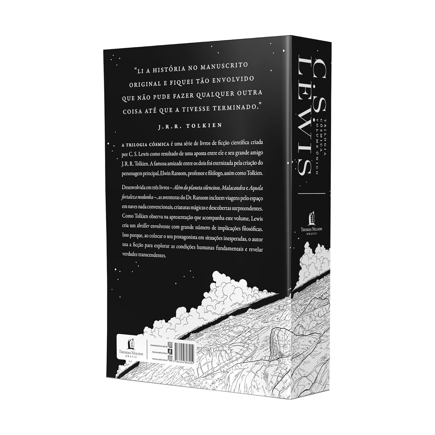 Esta edição da editora Thomas Nelson Brasil reúne as obras “Além do planeta silencioso”, “Perelandra” e “Aquela fortaleza medonha”. São quase 800 páginas de uma narrativa profunda que une aventura espacial, filosofia e teologia de forma magistral.