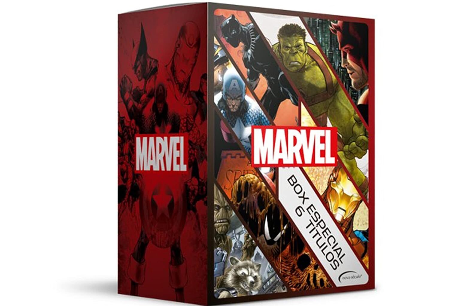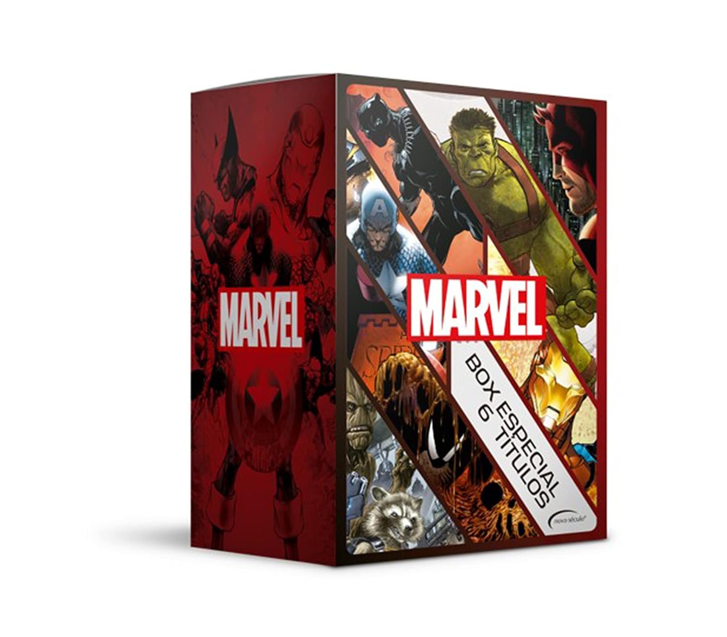 Capitão América, Homem de Ferro, Demolidor, Hulk, Homem-Aranha, Pantera Negra e Guardiões da Galáxia esperam você neste box especial contendo os grandes hits da Série Marvel, apresentados pela primeira vez em capa dura.
