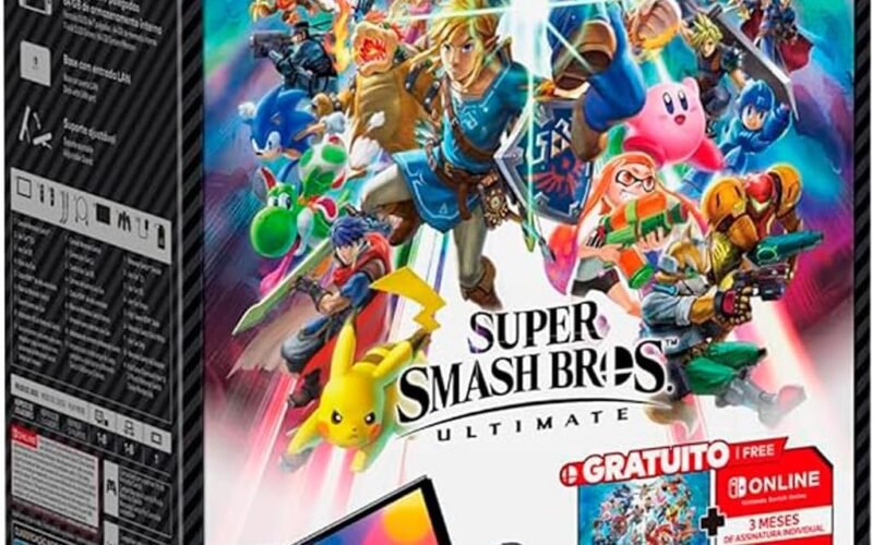 PromoçãoPromoção Amazon: Nintendo, Console + Jogo, Switch OLED Cinza, Jogo Digital Super Smash Bros Ultimate Digital + 3 Meses Assinatura Nintendo Switch Online – R$2.650,00